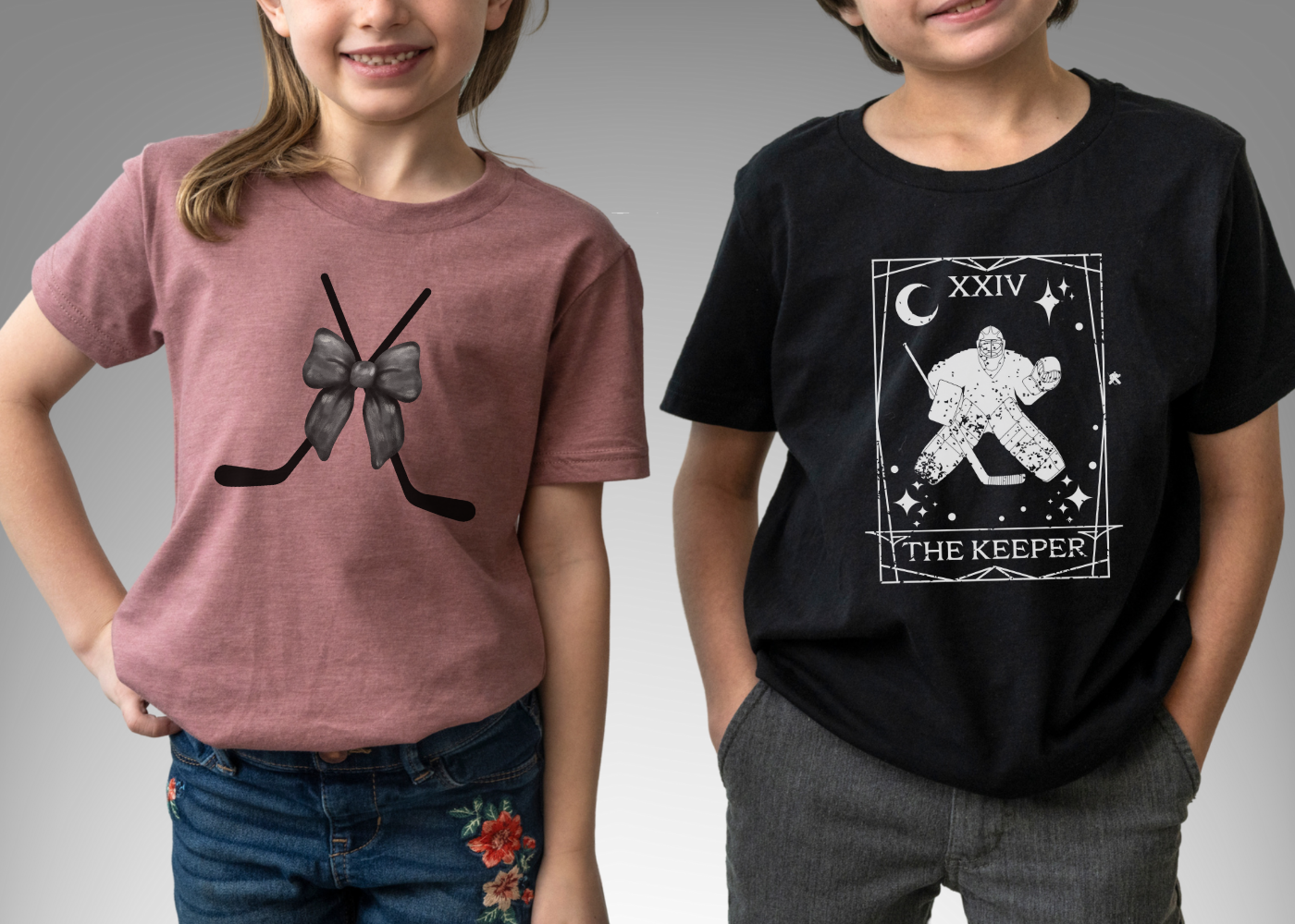 One of our kids is a goalie + the other is a girl (pictured 🩶). Both struggled to find gear that actually represented them...so we made it.